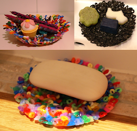 Vos enfants ont encore des perles de rocaille ? Prenez-en quelques-unes et mélangez-les à de la colle. Vous pouvez utiliser l’envers d’un saladier pour réaliser une forme incurvée. Réalisez des petites tiges de perles de rocaille encollées et collez-les dans le fond de votre porte-savon pour lui permettre de sécher sans que l’eau ne le touche.