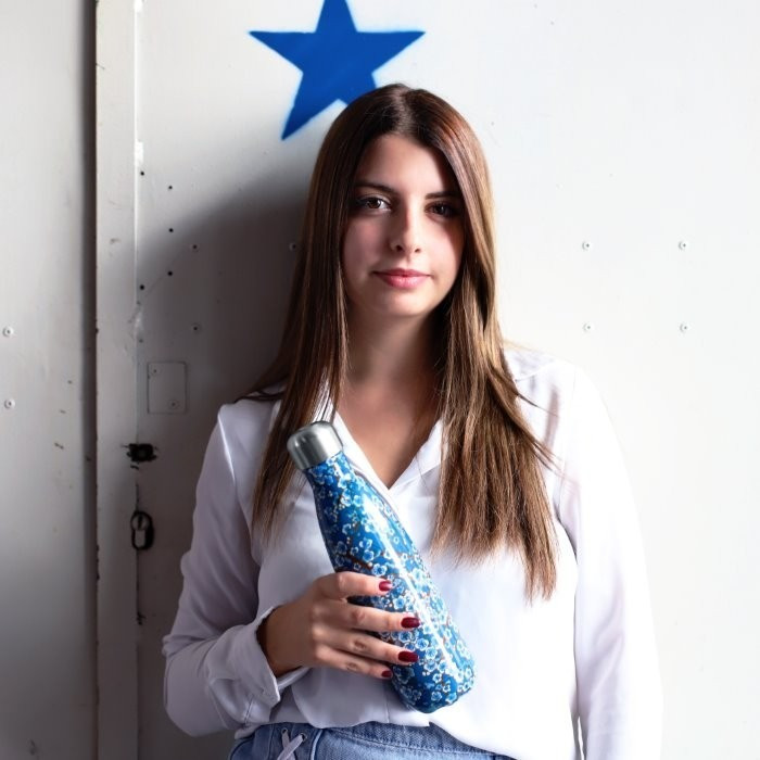 La bouteille inox isotherme Qwetch modèle Flowers Blue, c’est quoi ?