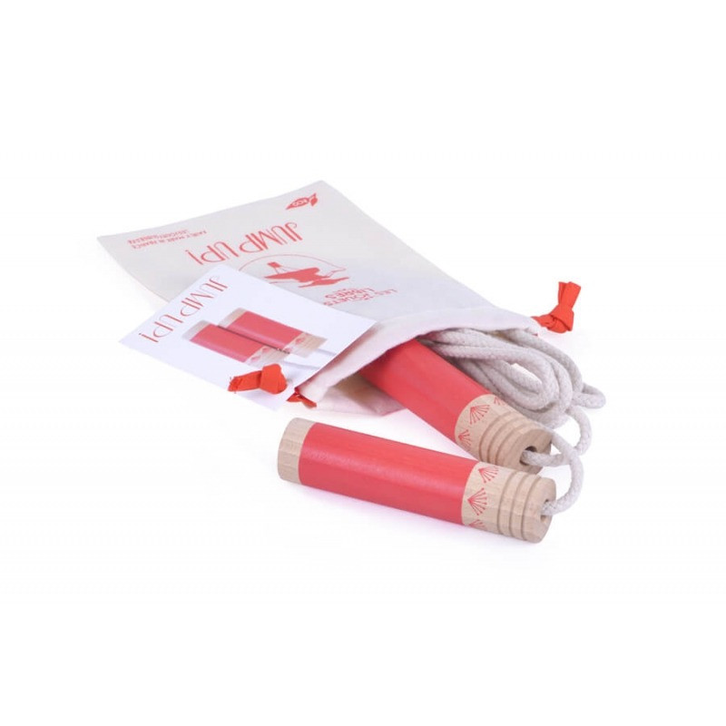 Corde à sauter rouge en bois et coton bio Les Jouets Libres