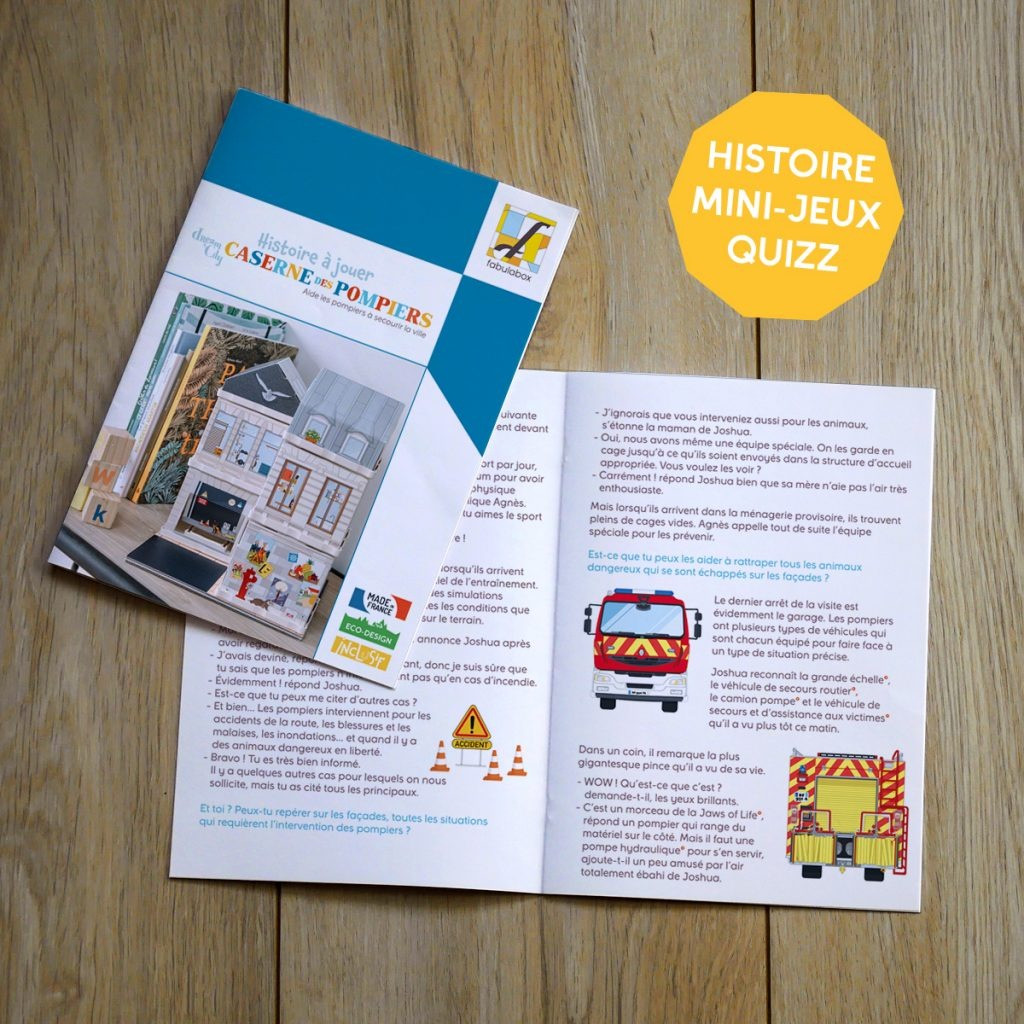 Jeu de construction – Caserne des pompiers jeux et loisirs créatifs Fabulabox Une histoire de pompiers pleine d’énigmes à résoudre et un décor unique à assembler pour s’inventer de grandes aventures avec ses jouets. Découvre le jeu de construction Caserne des pompiers. 40,00 € En stock Jeu de construction – Imagination – Énigmes Histoire à jouer incluse Made in France 13 éléments en biomatériaux très résistants à partir de 4 ans jusqu’au collège 22 x 22 x 4 cm