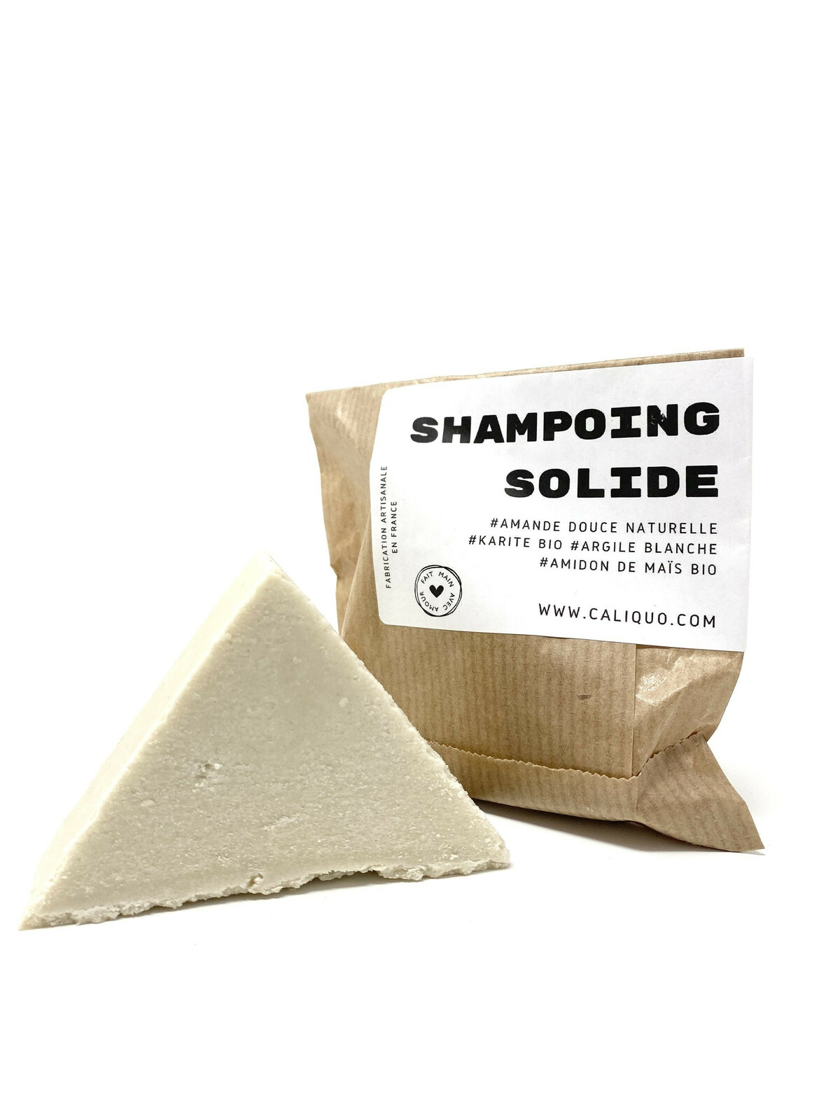 Tensio-actif doux issu de la noix de coco, huile de coco hydrogénée, argile blanche Kaolin, amidon de maïs biologique, beurre de karité biologique, glycérine biologique, cire de carnauba biologique, alcool stéarylique RSPO, parfum naturel d'amande douce.